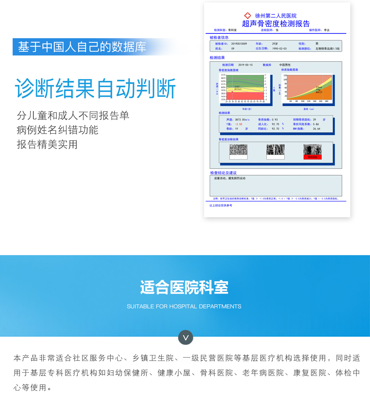 ■ 軟件優(yōu)勢::BMD-A系列超聲骨密度檢測儀一臺儀器裝配有智能分析系統(tǒng),經(jīng)濟(jì)實(shí)用??蓽y量0-100歲人群。