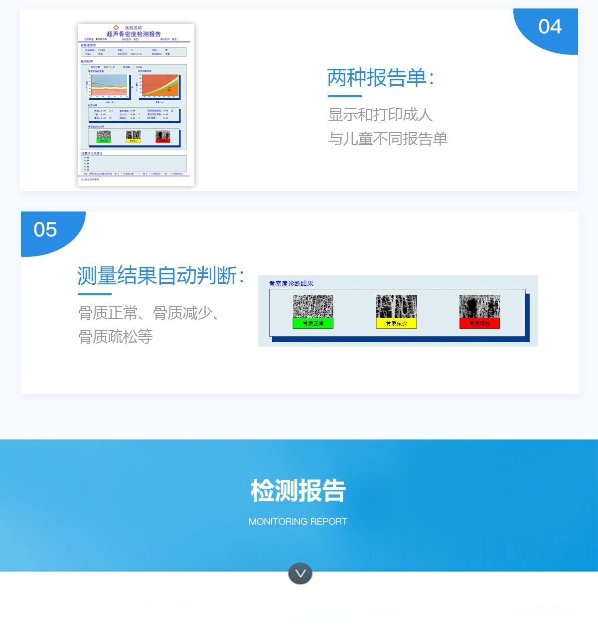 ■ 軟件優(yōu)勢::BMD-A系列超聲骨密度檢測儀一臺儀器裝配有智能分析系統(tǒng),經(jīng)濟實用??蓽y量0-100歲人群。